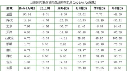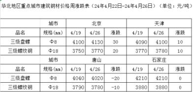 免責聲明:本網站(山東聊城晟杰無縫鋼管廠www.cuirutang.cn)刊載的“鋼鐵華北建材周報(四月第四周)”等均源于網絡,版權歸原作者所有,且僅代表原作者觀點,本文所載信息僅供參考。轉載僅為學習與交流之目的,如無意中侵犯您的合法權益,請及時聯系刪除。本網站刊登此篇文章并不意味著本站贊同其觀點或證實其內容的真實性,我們不對其科學性、嚴肅性等作任何形式的保證。如果侵犯了您的版權,請盡快聯系我們予以撤銷,謝謝合作!