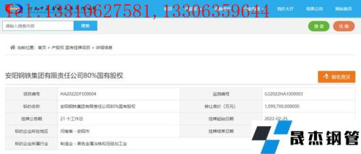 免責聲明:本網站(山東聊城晟杰無縫鋼管廠www.cuirutang.cn)刊載的“混改倒計時!安鋼集團110億掛牌轉讓!二十余鋼企有接手資格?”等均源于網絡,版權歸原作者所有,且僅代表原作者觀點,本文所載信息僅供參考。轉載僅為學習與交流之目的,如無意中侵犯您的合法權益,請及時聯系刪除。本網站刊登此篇文章并不意味著本站贊同其觀點或證實其內容的真實性,我們不對其科學性、嚴肅性等作任何形式的保證。如果侵犯了您的版權,請盡快聯系我們予以撤銷,謝謝合作!
