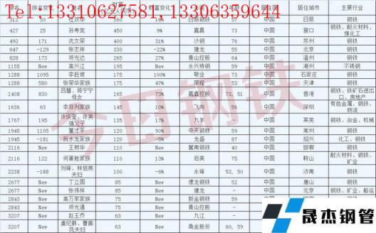 其中日照鋼鐵杜雙華以560億元人民幣榮登胡潤排行榜312位,嘉晨鋼鐵孫壽寬以450億元人民幣榮登胡潤第427位,沙鋼沈文榮400億元人民幣榮登胡潤492位,還有更多優(yōu)秀鋼企老總?cè)肓性斍槿缦拢?/p>