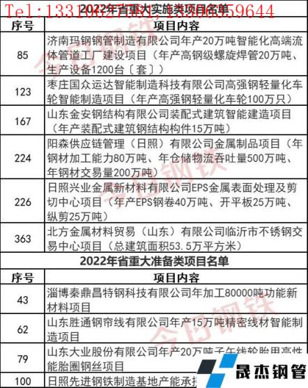 2022年1月20日,山東省人民政府發(fā)布《關(guān)于下達(dá)2022年省重大項(xiàng)目名單的通知》。此次通知中公布的600個(gè)項(xiàng)目中,涉及重大實(shí)施類項(xiàng)目449項(xiàng),重大準(zhǔn)備類項(xiàng)目151項(xiàng)。其中涉及到日照先進(jìn)鋼鐵制造基地產(chǎn)能承接一期項(xiàng)目、濟(jì)南瑪鋼厚壁無縫鋼管制造有限公司年產(chǎn)20萬噸智能化高端流體管道工廠建設(shè)項(xiàng)目等10個(gè)鋼鐵相關(guān)項(xiàng)目。