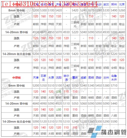 全國23個主要市場14-20mm 普中板平均價格5030元/噸,較上個交易日上調13元/噸。
