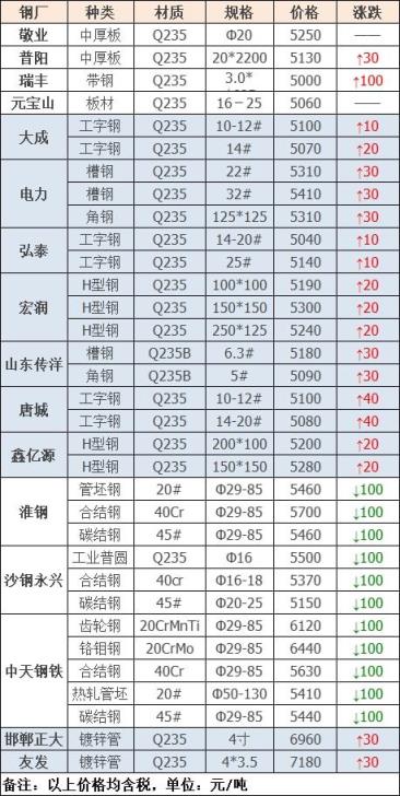 3月1日沙鋼廢鋼公司含稅廢鋼價格:重一3445重二3418重三3390爐一3463爐二3436剪中3363中一3336中二3299小一3217小二3172小廢三3117統(tǒng)廢2962壓塊一3163壓塊二3117原料壓塊一3117原料壓塊二3071切碎原一3199切碎原二3153,含3%稅