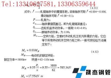 免責(zé)聲明:本網(wǎng)站(山東聊城晟杰無縫鋼管廠www.cuirutang.cn)刊載的“4.9 力能參數(shù)的計(jì)算(厚壁鋼管軋制)”等均源于網(wǎng)絡(luò),版權(quán)歸原作者所有,且僅代表原作者觀點(diǎn),本文所載信息僅供參考。轉(zhuǎn)載僅為學(xué)習(xí)與交流之目的,如無意中侵犯您的合法權(quán)益,請及時聯(lián)系刪除。本網(wǎng)站刊登此篇文章并不意味著本站贊同其觀點(diǎn)或證實(shí)其內(nèi)容的真實(shí)性,我們不對其科學(xué)性、嚴(yán)肅性等作任何形式的保證。如果侵犯了您的版權(quán),請盡快聯(lián)系我們予以撤銷,謝謝合作!