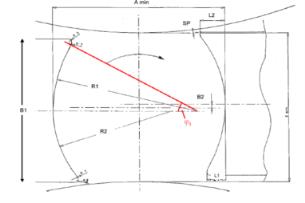 導(dǎo)盤的輪廓是由一般有兩個半徑入口半徑R2、出口半徑R1組成,根據(jù)經(jīng)驗我們可以確定其值的大?。?/p>