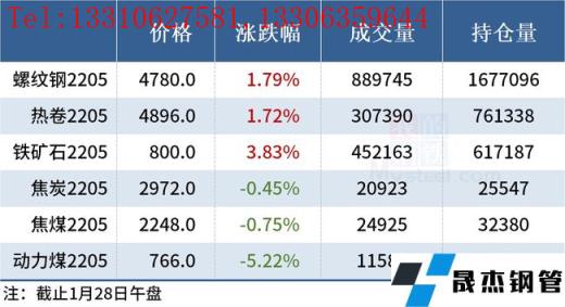 免責聲明:本網站(山東聊城晟杰無縫鋼管廠www.cuirutang.cn)刊載的“2022年01月28日午報:鐵礦石期貨漲逾3%,動力煤期貨跌超5%”等均源于網絡,版權歸原作者所有,且僅代表原作者觀點,本文所載信息僅供參考。轉載僅為學習與交流之目的,如無意中侵犯您的合法權益,請及時聯系刪除。本網站刊登此篇文章并不意味著本站贊同其觀點或證實其內容的真實性,我們不對其科學性、嚴肅性等作任何形式的保證。如果侵犯了您的版權,請盡快聯系我們予以撤銷,謝謝合作!