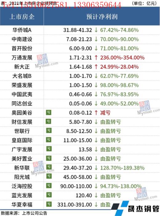 免責聲明:本網站(山東聊城晟杰無縫鋼管廠www.cuirutang.cn)刊載的“20家房企發布2021年業績預告,過半出現虧損”等均源于網絡,版權歸原作者所有,且僅代表原作者觀點,本文所載信息僅供參考。轉載僅為學習與交流之目的,如無意中侵犯您的合法權益,請及時聯系刪除。本網站刊登此篇文章并不意味著本站贊同其觀點或證實其內容的真實性,我們不對其科學性、嚴肅性等作任何形式的保證。如果侵犯了您的版權,請盡快聯系我們予以撤銷,謝謝合作!