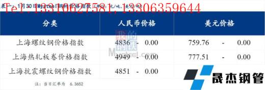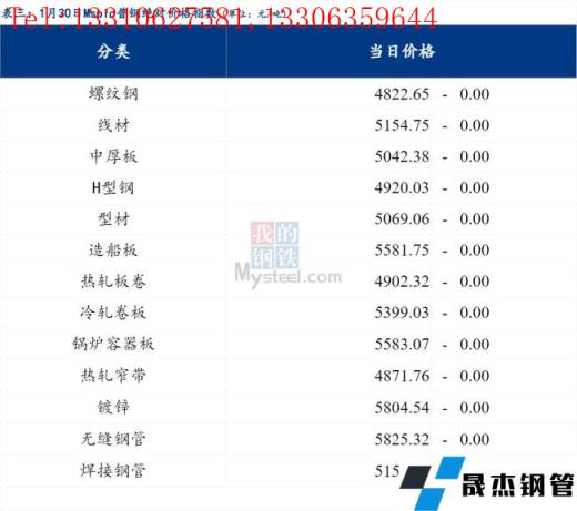 免責聲明:本網站(山東聊城晟杰無縫鋼管廠www.cuirutang.cn)刊載的“2022年01月30日日報:鋼材_無縫鋼管價格指數持平”等均源于網絡,版權歸原作者所有,且僅代表原作者觀點,本文所載信息僅供參考。轉載僅為學習與交流之目的,如無意中侵犯您的合法權益,請及時聯系刪除。本網站刊登此篇文章并不意味著本站贊同其觀點或證實其內容的真實性,我們不對其科學性、嚴肅性等作任何形式的保證。如果侵犯了您的版權,請盡快聯系我們予以撤銷,謝謝合作!