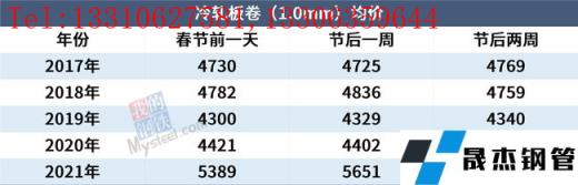 免責聲明:本網站(山東聊城晟杰無縫鋼管廠www.cuirutang.cn)刊載的“近5年春節前后鋼材_無縫鋼管市場走勢”等均源于網絡,版權歸原作者所有,且僅代表原作者觀點,本文所載信息僅供參考。轉載僅為學習與交流之目的,如無意中侵犯您的合法權益,請及時聯系刪除。本網站刊登此篇文章并不意味著本站贊同其觀點或證實其內容的真實性,我們不對其科學性、嚴肅性等作任何形式的保證。如果侵犯了您的版權,請盡快聯系我們予以撤銷,謝謝合作!