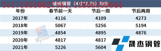 小編匯總近5年春節后兩周全國主要城市13大品種厚壁無縫鋼管均價走勢,以供參考。