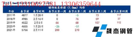 重慶鍍鋅:市場(chǎng)仍處于休市狀態(tài),多數(shù)貿(mào)易商暫未開(kāi)工。重慶1.0*1250*C有花鍍鋅板卷主流無(wú)縫厚壁鋼管廠家報(bào)價(jià)5600元/噸,較節(jié)前并未有變化。由于本地?zé)o縫厚壁鋼管廠家檢修,無(wú)縫厚壁鋼管廠家資源投放量有所減量,春節(jié)期間預(yù)估增加2000噸。貿(mào)易商整體庫(kù)存壓力尚可承受,對(duì)于節(jié)后行情信心較足。