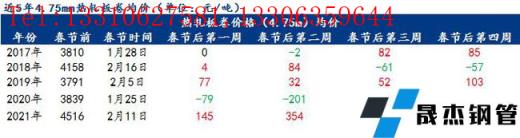 免責(zé)聲明:本網(wǎng)站(山東聊城晟杰無縫鋼管廠www.cuirutang.cn)刊載的“近5年春節(jié)前后全國熱軋板卷市場走勢”等均源于網(wǎng)絡(luò),版權(quán)歸原作者所有,且僅代表原作者觀點,本文所載信息僅供參考。轉(zhuǎn)載僅為學(xué)習(xí)與交流之目的,如無意中侵犯您的合法權(quán)益,請及時聯(lián)系刪除。本網(wǎng)站刊登此篇文章并不意味著本站贊同其觀點或證實其內(nèi)容的真實性,我們不對其科學(xué)性、嚴(yán)肅性等作任何形式的保證。如果侵犯了您的版權(quán),請盡快聯(lián)系我們予以撤銷,謝謝合作!