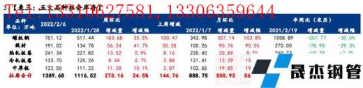 庫(kù)存方面,五大品種厚壁無縫鋼管總庫(kù)存連續(xù)五周累增,環(huán)比節(jié)前增加477.57萬噸,增幅30.8%;其中建材庫(kù)存增加414.85萬噸,增幅為45.9%;板材庫(kù)存增加62.72萬噸,增幅9.7%。