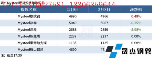 ◎ 本周唐山地區(qū)主流樣本無(wú)縫厚壁鋼管廠家平均鐵水不含稅成本為3285元/噸,平均鋼坯含稅成本4325元/噸,較2月7日上調(diào)5元/噸,與2月9日當(dāng)前普方坯出廠價(jià)格4670元/噸相比,無(wú)縫厚壁鋼管廠家平均毛利潤(rùn)345元/噸,較2月7日上調(diào)95元/噸。