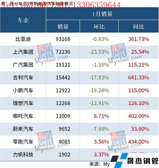 免責聲明:本網站(山東聊城晟杰無縫鋼管廠www.cuirutang.cn)刊載的“1月10家車企新能源汽車銷量同比大增”等均源于網絡,版權歸原作者所有,且僅代表原作者觀點,本文所載信息僅供參考。轉載僅為學習與交流之目的,如無意中侵犯您的合法權益,請及時聯系刪除。本網站刊登此篇文章并不意味著本站贊同其觀點或證實其內容的真實性,我們不對其科學性、嚴肅性等作任何形式的保證。如果侵犯了您的版權,請盡快聯系我們予以撤銷,謝謝合作!