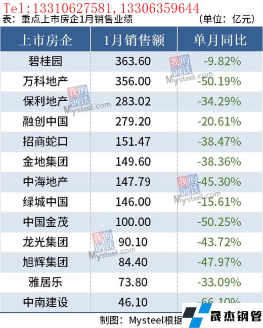 免責聲明:本網站(山東聊城晟杰無縫鋼管廠www.cuirutang.cn)刊載的“13家重點房企1月銷售同比大幅下滑,房地產市場低溫運行”等均源于網絡,版權歸原作者所有,且僅代表原作者觀點,本文所載信息僅供參考。轉載僅為學習與交流之目的,如無意中侵犯您的合法權益,請及時聯系刪除。本網站刊登此篇文章并不意味著本站贊同其觀點或證實其內容的真實性,我們不對其科學性、嚴肅性等作任何形式的保證。如果侵犯了您的版權,請盡快聯系我們予以撤銷,謝謝合作!
