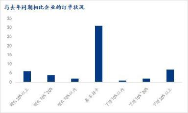 3、同比去年,22.64%的企業訂單出現了不同程度增長,58.49%企業訂單基本與去年持平,但我們也看到了18.88%企業訂單出現了下滑;