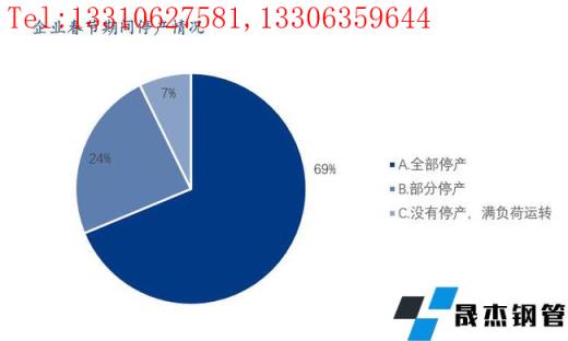 本次調(diào)研樣本企業(yè)中春節(jié)期間全部停產(chǎn)的占比69%;部分停產(chǎn)的占比24%;沒有停產(chǎn)且滿負(fù)荷運(yùn)轉(zhuǎn)的企業(yè)占比7%。