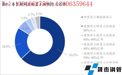 據(jù)調(diào)研,春節(jié)期間所有員工都放假停工的企業(yè)占調(diào)研樣本比例達到63.2%,放假停工的員工比例在80%以上的企業(yè)樣本占比達到20.9%,同時放假停工的員工比例不到20%的企業(yè)僅占比3.3%。