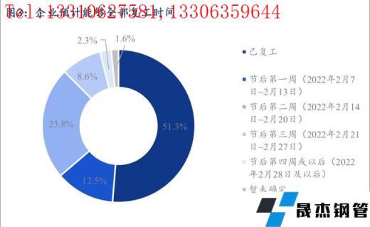 分行業(yè)來看,終端銷售樣本企業(yè)中,60.6%的企業(yè)目前已經(jīng)完全復工,節(jié)后第二周內(nèi)能夠復工的樣本企業(yè)占比可以達到89.1%,主要由于今年節(jié)前冬儲備貨情況整體較少,節(jié)后開門紅的行情走勢下,很多企業(yè)提前復工,積極入市詢價采購,以爭取利潤最大化。工程建筑樣本企業(yè)中,39.7%的企業(yè)目前已經(jīng)完成復工,節(jié)后第二周內(nèi)能夠復工的樣本企業(yè)占比可以達到85.6%,整體進度情況也要好于往年同期水平。僅0.9%的工程建筑企業(yè)和2.1%的終端銷售企業(yè)暫未有明確的復工時間,主要是受疫情以及冬奧會的影響。