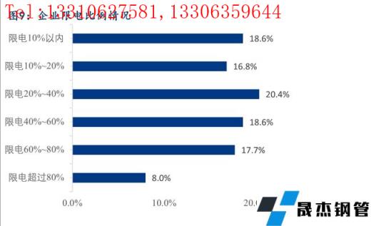 據(jù)調(diào)研,22.0%的樣本企業(yè)明確表示目前存在限電的情況,限電的比例較為平均,35.4%的樣本企業(yè)限電比例在20%以內(nèi),38.9%的樣本企業(yè)限電比例在20%-60%,25.7%的樣本企業(yè)限電比例在60%以上。