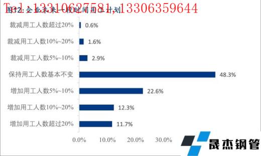 6、目前企業(yè)在崗員工人數(shù)與實際需求基本匹配的占比為48.0%,35.5%的企業(yè)目前在崗員工人數(shù)與實際需求相比存在少量的缺口,46.6%的企業(yè)在未來一段時間內(nèi)有增加用工人數(shù)的計劃,由此可見未來一段時間內(nèi)行業(yè)用工需求依然較大,僅僅只有5.1%的企業(yè)未在崗員工人數(shù)超過實際需求,預計未來一段時間會有少量的人員裁減計劃。