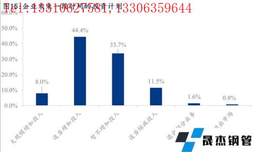 據(jù)調(diào)研,33.7%的企業(yè)在未來一段時間暫不增加投入,52.4%的企業(yè)在未來一段時間有投資計劃,其中大規(guī)模增加投入的企業(yè)占比8.0%,而適當縮減或退出部分業(yè)務的企業(yè)占比13.8%左右。