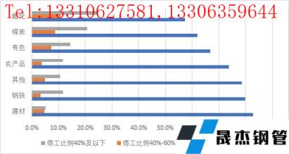 從不同行業(yè)的停工比例來看,鋼鐵、建材由于季節(jié)性生產(chǎn)和消費(fèi)特征明顯,停工比例達(dá)到80%的企業(yè)數(shù)量明顯高于其他行業(yè),且較去年相比,鋼鐵、建材行業(yè)停工比例達(dá)到80%及以上企業(yè)數(shù)量占比分別提高3.4和5.9個(gè)百分點(diǎn)。