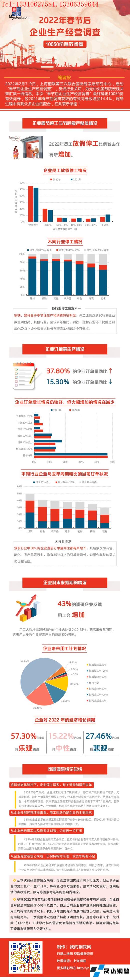 2022年2月7-9日,上海鋼聯(lián)第三次聯(lián)合國(guó)務(wù)院發(fā)展研究中心,啟動(dòng)“春節(jié)后企業(yè)生產(chǎn)經(jīng)營(yíng)調(diào)查”,反饋行業(yè)關(guān)切,為黨中央國(guó)務(wù)院宏觀決策匯集一線信息。本次“春節(jié)后企業(yè)生產(chǎn)經(jīng)營(yíng)調(diào)查”最終確定10050份有效問(wèn)卷,較2021年春節(jié)后調(diào)研獲取的有效問(wèn)卷數(shù)增加14.4%。 具體結(jié)論如下: