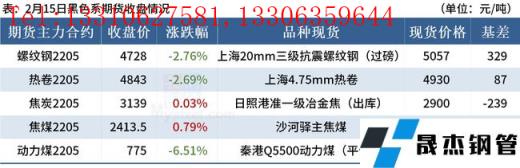 ◎ 2月15日唐山遷安地區普方坯資源出廠含稅下調50,報4650元。
