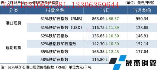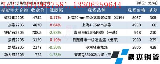 ◎ 2月15日,焦炭市場弱穩(wěn)運行,唐山個別無縫厚壁鋼管廠家焦炭提降200元/噸,主流地區(qū)暫無回應,市場多觀望為主。