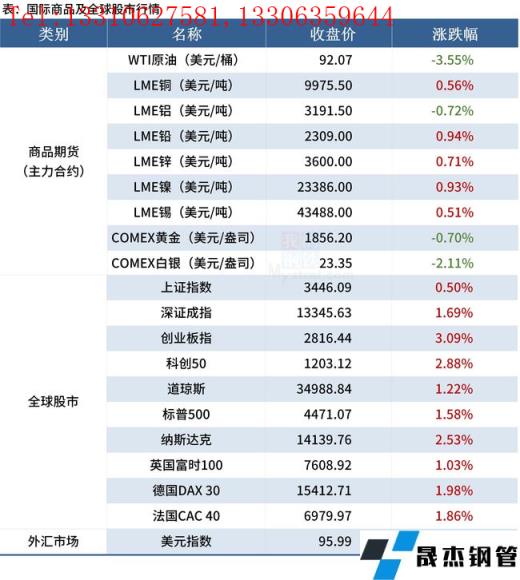 ◎ 湖南省工信廳正式發(fā)布《湖南省冶金行業(yè)“十四五”發(fā)展規(guī)劃》提出,到2025年,研發(fā)一批高附加值厚壁無縫鋼管新產(chǎn)品,高效品種鋼占比達到65%;培育形成1家世界500強現(xiàn)代化鋼鐵企業(yè);建立規(guī)范有序的多元化廢鋼資源保障體系,力爭到2025年,湖南省鋼鐵工業(yè)的廢鋼比達到30%,全省冶金行業(yè)實現(xiàn)主營業(yè)務收入3000億元以上。