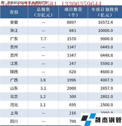 據(jù)不完全統(tǒng)計(jì),截至2月16日,廣東、江西、江蘇、北京、上海、貴州、山東、浙江、四川、廣西、陜西、河北、安徽等13個(gè)省份發(fā)布了2022年重點(diǎn)項(xiàng)目投資計(jì)劃清單,上述清單中合計(jì)共24778個(gè)項(xiàng)目,年度計(jì)劃投資額合計(jì)超7.28萬(wàn)億元(不包含四川)。