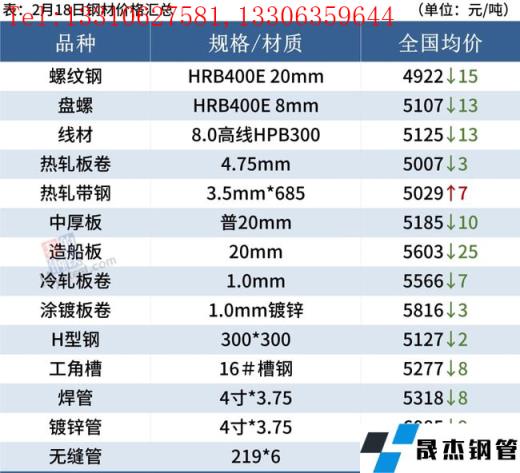 建筑厚壁無縫鋼管:2月18日,全國31個主要城市20mm三級抗震螺紋鋼均價4922元/噸,較上個交易日跌15元/噸。短期來看,目前市場基本面仍然不穩,情緒驅動價格波動較大。短期還需要關注需求復蘇及累庫速度。預計下周國內建筑厚壁無縫鋼管價格或將繼續窄幅調整。