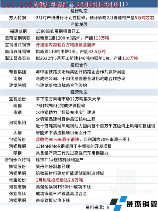 免責聲明:本網站(山東聊城晟杰無縫鋼管廠www.cuirutang.cn)刊載的“一周無縫鋼管廠家動態匯總(2月14日-2月18日)”等均源于網絡,版權歸原作者所有,且僅代表原作者觀點,本文所載信息僅供參考。轉載僅為學習與交流之目的,如無意中侵犯您的合法權益,請及時聯系刪除。本網站刊登此篇文章并不意味著本站贊同其觀點或證實其內容的真實性,我們不對其科學性、嚴肅性等作任何形式的保證。如果侵犯了您的版權,請盡快聯系我們予以撤銷,謝謝合作!
