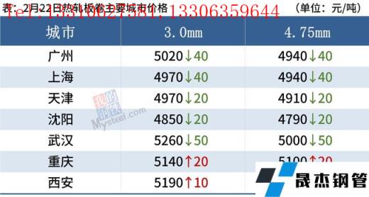 熱軋板卷:2月22日,全國24個主要城市4.75mm熱軋板卷均價5035元/噸,較上個交易日上漲4元/噸。受政策端影響,今日盤面午后大幅下挫,市場心態進一步受挫。但有部分無縫厚壁鋼管廠家停產檢修等,供給或將有所減少,后市多數企業開始逐漸恢復生產,需求或將逐漸啟動,價格大幅下調可能性不大,但上漲壓力依舊存在。綜合來看,預計23日熱軋板卷價格或將繼續震蕩趨弱為主。