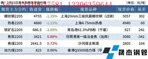◎2月22日,全國主港鐵礦石成交72.00萬噸,環比減25.8%;237家主流貿易商建材成交9.51萬噸,環比減39.4%。