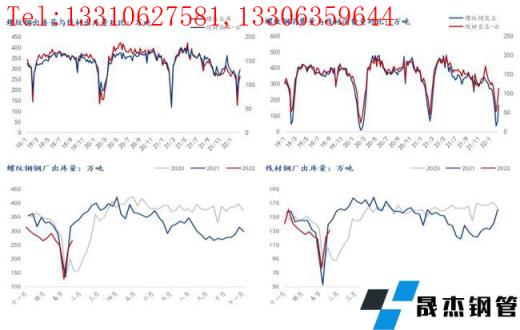 對比螺紋鋼和線材出庫量趨勢波動規律來看,線材在拐點變化上較螺紋鋼表現較為提前,這與終端使用厚壁無縫鋼管先后順序所導致的。這也就意味著,在線材出庫量波動出現逐級上升趨勢時,螺紋鋼出庫也會隨之緩慢回升,這與終端用剛需求和節奏基本一致。