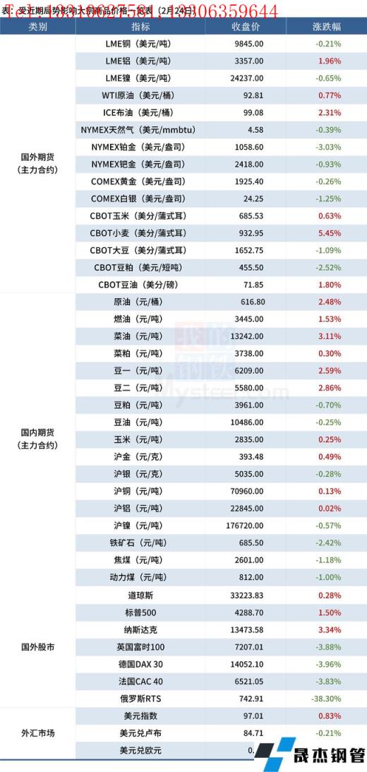 免責(zé)聲明:本網(wǎng)站(山東聊城晟杰無縫鋼管廠www.cuirutang.cn)刊載的“受近期局勢影響大宗商品價格一覽表(2月24日)”等均源于網(wǎng)絡(luò),版權(quán)歸原作者所有,且僅代表原作者觀點(diǎn),本文所載信息僅供參考。轉(zhuǎn)載僅為學(xué)習(xí)與交流之目的,如無意中侵犯您的合法權(quán)益,請及時聯(lián)系刪除。本網(wǎng)站刊登此篇文章并不意味著本站贊同其觀點(diǎn)或證實(shí)其內(nèi)容的真實(shí)性,我們不對其科學(xué)性、嚴(yán)肅性等作任何形式的保證。如果侵犯了您的版權(quán),請盡快聯(lián)系我們予以撤銷,謝謝合作!
