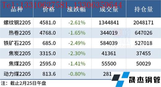 免責聲明:本網站(山東聊城晟杰無縫鋼管廠www.cuirutang.cn)刊載的“2022年02月25日午報:鋼價普遍下跌,黑色期貨全線飄綠”等均源于網絡,版權歸原作者所有,且僅代表原作者觀點,本文所載信息僅供參考。轉載僅為學習與交流之目的,如無意中侵犯您的合法權益,請及時聯系刪除。本網站刊登此篇文章并不意味著本站贊同其觀點或證實其內容的真實性,我們不對其科學性、嚴肅性等作任何形式的保證。如果侵犯了您的版權,請盡快聯系我們予以撤銷,謝謝合作!