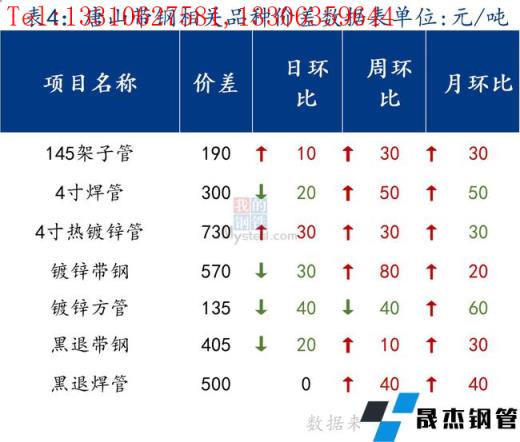 今日唐山管帶價格回落,其中355帶鋼價格較上一交易日跌10元/噸,145帶鋼較上一交易日跌70元/噸,焊管價格跌30元/噸,鍍鋅管價格持穩。市場成交稍有增加,但整體仍然清淡。
