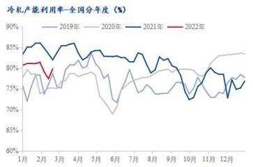 受冬奧會限產、國家政策等方面的影響,各大無縫厚壁鋼管廠家陸續發布停產檢修計劃,市場資源供給偏少,據山東地區部分商家反饋,目前實際入庫資源不多,庫存有所增加但未到累庫高潮,增速緩慢于往年,市場庫存壓力不大。截止發稿,監測的29家冷軋板卷生產企業中,本周開工率85.11%,周環比增加2.13%;無縫厚壁鋼管廠家產能利用率80.62%,周環比增加0.79%;無縫厚壁鋼管廠家周實際產量為81.60萬噸,周環比增加0.80萬噸;無縫厚壁鋼管廠家庫存38.86萬噸,周環比減少2.08萬噸。縱觀2021年冷軋產能利用率,1-8月份雖高于近三年的同期數據,但從2021年全年來看卻是在逐步減少,供給面呈現收緊狀態。