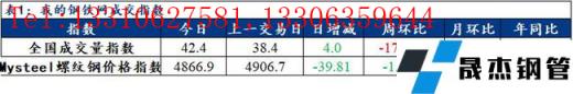 訊:全國建筑厚壁無縫鋼管成交量監(jiān)測,成交量相對指數(shù)來看,全國42.4增4,北方15.9增3.7,華東68.5增11.6,南方30.9減3.6。今日螺紋鋼價格指數(shù)4866.9,較上一交易日減39.81。
