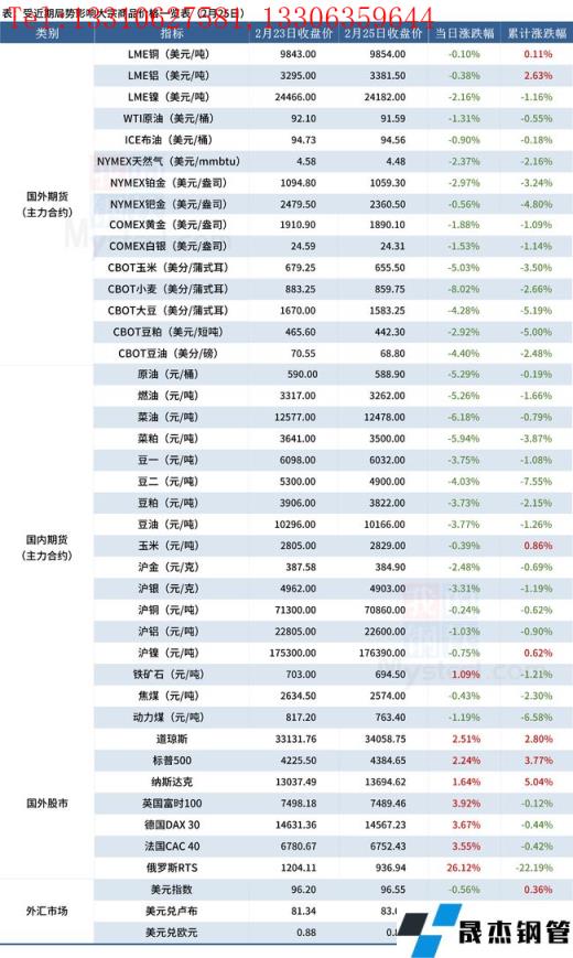 近期,受國際局勢(shì)影響,全球金融及大宗商品市場(chǎng)出現(xiàn)較大波動(dòng)。2月25日,農(nóng)產(chǎn)品、原油由漲轉(zhuǎn)跌,俄羅斯RTS則由跌轉(zhuǎn)漲,匯總情況如下: