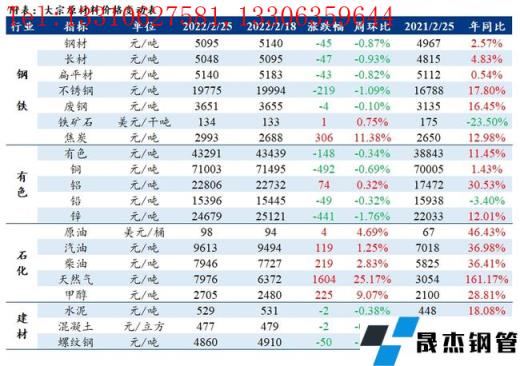 免責聲明:本網站(山東聊城晟杰無縫鋼管廠www.cuirutang.cn)刊載的“周報:大宗原材料價格周報(2.21-2.25)”等均源于網絡,版權歸原作者所有,且僅代表原作者觀點,本文所載信息僅供參考。轉載僅為學習與交流之目的,如無意中侵犯您的合法權益,請及時聯系刪除。本網站刊登此篇文章并不意味著本站贊同其觀點或證實其內容的真實性,我們不對其科學性、嚴肅性等作任何形式的保證。如果侵犯了您的版權,請盡快聯系我們予以撤銷,謝謝合作!