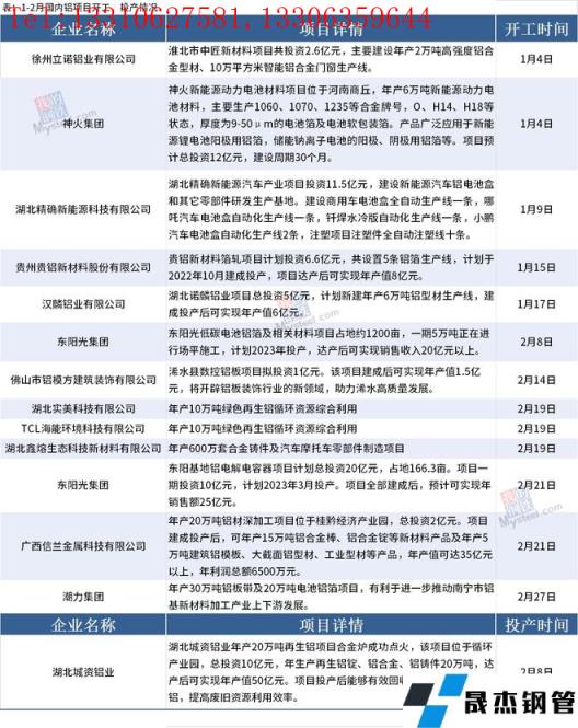 免責聲明:本網站(山東聊城晟杰無縫鋼管廠www.cuirutang.cn)刊載的“1-2月國內鋁項目開工、投產情況”等均源于網絡,版權歸原作者所有,且僅代表原作者觀點,本文所載信息僅供參考。轉載僅為學習與交流之目的,如無意中侵犯您的合法權益,請及時聯系刪除。本網站刊登此篇文章并不意味著本站贊同其觀點或證實其內容的真實性,我們不對其科學性、嚴肅性等作任何形式的保證。如果侵犯了您的版權,請盡快聯系我們予以撤銷,謝謝合作!