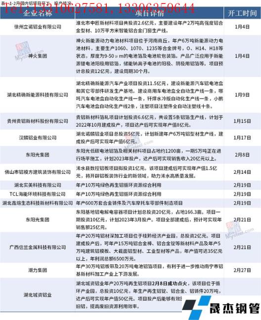 據不完全整理,2022年1-2月國內共14個鋁項目開工、投產。其中,1月淮北市中匠新材料項目、神火新能源動力電池材料項目等5個項目開工;2月東陽光低碳電池鋁箔項目、浠水縣數控鋁板項目等8個項目開工,湖北城資鋁業年產20萬噸再生鋁項目投產。具體內容如下: