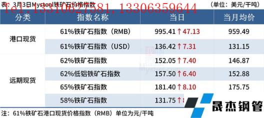 ◎ 3月3日,全國主港鐵礦石成交94.00萬噸,環(huán)比增19.3%;237家主流貿(mào)易商建材成交17.00萬噸,環(huán)比增7.4%。