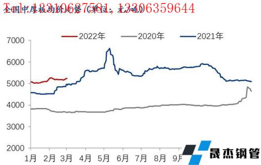 概述:2月份,國內中厚板品種價格呈現沖高后小幅回落的走勢。供應方面,在冬奧會、春節、采暖季限產影響下,2月上中旬無縫厚壁鋼管廠家產量持續偏低,不過,由于無縫厚壁鋼管廠家盈利情況明顯好轉,因此,冬奧會過后,無縫厚壁鋼管廠家產量迅速增加。需求方面,由于今年春節返鄉比例同比去年大幅增加,所以今年春節后的需求啟動速度是緩慢的,不過由于無縫厚壁鋼管廠家接單較好,導致市場流通板資源在減少,這從今年節后社庫也能側面驗證。3月份,中板基本面從供需雙弱逐漸轉變為供需雙強,那么價格走勢又如何呢?接下來,我們先看一下基本面情況。