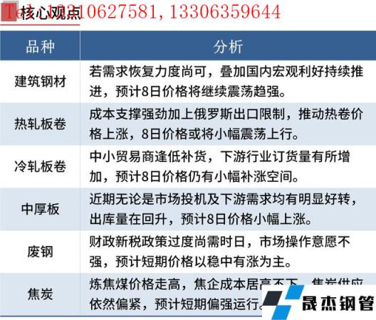 建筑厚壁無(wú)縫鋼管:3月7日,全國(guó)31個(gè)主要城市20mm三級(jí)抗震螺紋鋼均價(jià)5037元/噸,較上個(gè)交易日上漲91元/噸。短期來(lái)看,供應(yīng)方面,隨著冬奧會(huì)的結(jié)束,3月產(chǎn)量回升是確定性事件,在殘奧會(huì)及兩會(huì)結(jié)束后,產(chǎn)量的回升速度將進(jìn)一步加快;成交方面,進(jìn)入金3月下游終端陸續(xù)復(fù)工,現(xiàn)貨價(jià)格跟隨期貨價(jià)格反彈后,成交也較2月逐漸進(jìn)入正軌。綜合來(lái)看,在3月市場(chǎng)需求不斷回暖的情況下,還需繼續(xù)驗(yàn)證需求能否大規(guī)模持續(xù)復(fù)蘇,若需求恢復(fù)力度尚可,疊加國(guó)內(nèi)宏觀利好持續(xù)推進(jìn),預(yù)計(jì)8日國(guó)內(nèi)建筑厚壁無(wú)縫鋼管價(jià)格將繼續(xù)震蕩趨強(qiáng)。