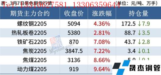 熱軋板卷:3月7日,全國(guó)24個(gè)主要城市4.75mm熱軋板卷均價(jià)5289元/噸,較上個(gè)交易日上漲111元/噸。由于對(duì)能源供應(yīng)的擔(dān)憂,大宗商品類(lèi)品種普遍抬升,雙焦、鐵礦石等原料端的上漲帶動(dòng)了成品材的價(jià)格上漲,成本支撐強(qiáng)勁。同時(shí),俄羅斯熱卷出口限制,供應(yīng)的擔(dān)憂再一次推動(dòng)了熱卷價(jià)格的上漲,明顯帶動(dòng)國(guó)內(nèi)價(jià)格的上漲。8日全國(guó)熱軋板卷價(jià)格或?qū)⑿》鹗幧闲小?/p>